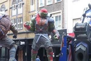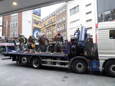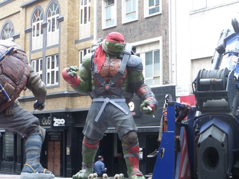Spotted in Leicester Square - the teenage mutant ninja turtles get ready to greet the crowds!