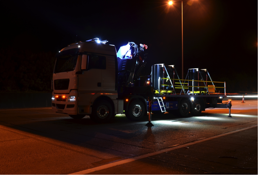 All our vehicles are fitted with blind spot elimination technology to ensure that other road users are as visible as possible to our drivers with a four camera system which allows the driver to quickly see if there is anything around the vehicle and that we are as visible to other road users with strobe lights and a verbal message to warn other road users that we are turning left. The larger hiabs are also fitted with downwards facing lights mounted on the body of the vehicle plus additional jib mounted lights to make our night-time works as safe as possible.